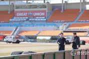 광장일보 이현나 기자 | 춘천시가 11일 송암스포츠타운 주경기장에서 열리는 강원FC의 아시아챔피언스리그 엘리트(ACLE) 홈경기를 앞두고 경기장 안전 확보와 원활한 경기 운영에 만전을 기하고 있다. 육동한 춘천시장은 9일 송암스포츠타운을 찾아 혹한기 경기 개최에 따른 그라운드 상태와 및 한파로 인한 관람석 결빙 등의 안전관리 상태를 최종 점검했다. 앞서 시는 한파 속 강원FC의 아시아 무대 홈경기가 춘천에서 안정적으로 개최될 수 있도록 춘천도시공사, 강원FC와 함께 기관별 역할 분담과 현장 대응 체계를 공유해 왔다. 이와 관련, 춘천도시공사는 잔디 보호를 위해 차광막을 설치하고 경기장 주변 제설제 사전 살포와 보행 동선 안전점검을 실시했다. 최근 한파 상황을 종합적으로 고려해 경기 당일 잔디 상태에 영향을 최소화할 수 있도록 이날 오전 차광막을 제거하는 등 그라운드 관리에 집중했다. 강원FC는 원정석을 포함한 관람석 전반에 대한 제설 및 결빙 제거 작업을 담당하며 관람객 안전 확보에 주력했다. 육동한 시장은 “혹한기 속에서 열리는 국제대회인 만큼 선수들의 경기 여건과 관람객 안전을 최우선으로 둬야한