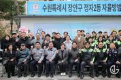 광장일보 나학천 기자 | 수원시 장안구는 지난 6일 정자2동 자율방범대가 초소를 이전하고 자율방범대원들의 안전을 기원하는 개소식을 개최했다고 밝혔다. 이날 개소식에는 이일희 장안구청장, 최영민 장안경찰서 범죄예방대응과장, 신옥철 장안지구대장, 이철재 장안 자율방범연합대장, 노정호 정자2동 자율방범대장, 장안구 소속 자율방범대원, 정자2동 단체장 등 50여 명이 참석했다. 정자2동 자율방범대의 방범초소 이전은 기존 초소가 위치한 정자2동 경로당 이용자 증가 및 수원스타필드 인근 유동 인구 증가에 따른 안전 취약지역의 방범 수요가 맞물려 초소 이전 필요성이 제기된 지역에 대한 안전을 위하여 결정된 중요한 조치였다. 이일희 장안구청장은 “지역 주민들의 안전을 위해 봉사하는 자율방범대원들의 노고에 깊은 감사를 드린다”며 “자율방범대의 야간 순찰활동이 원활하게 이뤄질 수 있도록 지원을 아끼지 않겠다”고 말했다.