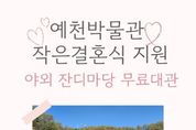 광장일보 주재영 기자 | 예천박물관은 오는 3월부터 야외 잔디마당을 ‘작은결혼식’ 장소로 무료 대관한다고 밝혔다. 이번 사업은 과도한 결혼 비용과 형식 중심의 예식 문화에서 벗어나, 실속 있고 가치 중심의 결혼식을 장려하기 위해 마련됐다. 특히 자연 친화적이고 개방감 있는 예천박물관 야외 잔디마당의 공간적 특성을 살려 가족·친지 중심의 따뜻한 예식을 지원할 계획이다. 대관 대상은 신청일 현재 부부 중 1인 이상이 예천군에 주소를 두고 있는 예비 부부로, 신청을 희망하는 경우 예천박물관 홈페이지에서 신청서를 내려받아 작성 후 제출하면 된다. 예식은 양가 하객 100명 이하의 소규모로만 가능하며, 음식 제공은 음료에 한해 허용되고 피로연은 금지된다. 김상식 문화관광과장은 “박물관의 아름다운 잔디마당이 예비부부들에게는 실속 있고 특별한 추억의 장소가 되길 기대한다”며 “이용객들이 불편함 없이 생애 가장 빛나는 순간을 맞이할 수 있도록 운영과 지원에 최선을 다하겠다”고 말했다.