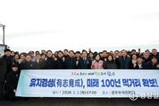 광장일보 주재영 기자 | 완주군이 2026년 병오년(丙午年) 새해를 맞아 ‘현장 소통’으로 첫날 일정을 시작하며 군민과 함께 희망찬 도약을 다짐했다. 유희태 완주군수는 지난 1일 첫 공식 일정으로 용진로컬푸드직매장을 찾아 새해 첫날 새벽을 여는 납품 농가들을 격려하고 현장의 목소리를 청취했다. 유 군수는 이 자리에서 로컬푸드 활성화에 헌신하는 농업인들의 노고에 감사를 전하고 “2026년에도 현장 중심의 소통 행정을 이어가 농업인들이 자긍심을 갖고 안정적으로 생산에 전념할 수 있도록 지원을 아끼지 않겠다”고 밝혔다. 현장 일정을 마친 후에는 직원들과 완주우석전망대로 이동하여 신년 해맞이 행사를 진행했으며, 올해 완주군의 강한 추진력을 담은 사자성어인 '유지경성(有志竟成)'을 붓글씨로 휘호하는 퍼포먼스를 선보였다. ‘유지경성’은 ‘뜻을 가진 사람은 마침내 그 뜻을 이룬다’는 의미로, 군민과의 약속을 반드시 성취하겠다는 완주군의 강력한 의지를 담았다. 이와 함께 간부 공무원들은 새해 희망과 다짐을 적으며 결의를 다졌으며, 참석자들은 23층 옥외 전망대로 이동해 힘차게 떠오르는 태양을 바라보며