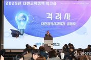 광장일보 이현나 기자 | 대전교육과학연구원 대전교육정책연구소는 12월 18일 대전 롯데시티호텔에서 2025년 대전교육정책 워크숍을 개최했다고 밝혔다. 이번 워크숍은 대전광역시교육청 4급(상당) 이상 간부공무원을 비롯한 정책 담당자들의 역량을 높이고, 2025년에 수행된 정책연구 결과를 실질적인 정책 입안으로 연결하기 위한 논의의 장으로 기획됐다. 참석자들은 올해 연구소가 추진한 다양한 연구 프로젝트와 각 협력부서의 활용 계획을 공유하며, 대전교육의 다음 단계 발전을 위해 어떤 정책적 대응이 필요한지 함께 고민했다. 워크숍에는 교육감과 부교육감을 비롯해 간부직원, 교육전문직, 일반직, 정책연구용역심의위원, 정책연구관리위원 등 100여 명이 참여해 활기를 더했다. 참석자들은 연구 성과가 현장의 요구와 어떻게 만날 수 있을지, 또 실제 정책 과정에서 어떤 점들이 더 보완되어야 하는지 적극적으로 의견을 나누며 뜨거운 관심을 보였다. 대전교육정책연구소는 올해 워크숍의 운영 방식을 한층 발전시켰다. 연구소는 대전교육정책 워크숍 온라인 플랫폼을 구축하고 태블릿PC 100대를 활용한‘종이