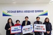 광장일보 이현나 기자 | 원주시는 지난 6일 시청에서 ‘2026년 제1회 원주시 시민감사관 정례회의’를 개최했다. 시민감사관 제도는 시정에 대한 감시 기능을 강화하고, 공익 제보와 제도 개선을 통해 원주시 행정의 투명성과 공정성을 높이기 위한 제도다. 이번 회의는 시민감사관들이 시정에 대한 의견을 제시하고, 더 나은 행정을 위한 실질적인 방안을 모색하는 자리로 마련됐다. 이날 회의에서는 제보 사항의 처리 결과를 공유하고, 시민감사관 제도의 운영 계획과 향후 활동 방안에 대해 자유롭게 의견을 나눴다. 원주시는 앞으로도 시민감사관 제도를 더욱 활성화해 시정에 대한 주민의 신뢰를 높이고, 시민의 목소리가 행정에 직접 반영될 수 있도록 적극 지원할 방침이다. 이병하 원주시 감사관은 “시민감사관 제도는 원주시 행정의 투명성을 높이는 중요한 수단”이라며, “시민 권익 향상에 실질적인 도움이 될 수 있도록 다양한 활동을 지원하겠다”라고 말했다.