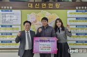 광장일보 주재영 기자 | 지난 2일 티에이건설 김태진 대표가 관내 어려운 이웃을 위해 사용해 달라며 이웃돕기 성금 200만원을 대신면 행정복지센터에 기탁했다. 이번 기탁은 김태진 대표의 남다른 지역 사랑이 깃들어 있어 더욱 의미가 깊다. 김태진 대표는 지난해까지 대신면 당남리 이장으로 활동하며 마을의 크고 작은 일을 도맡아 해결하는 등 지역 발전을 위해 헌신해왔으며 이장직을 내려놓은 이후에도 기업인으로 지역사회에 공헌하고자 하는 마음을 담아 성금을 전달했다. 김태진 티에이건설 대표는 “대신면의 일원으로서 대신면과 주민들을 위해 앞으로도 변함없이 힘을 보태며, 지역사회를 위해 꾸준히 힘쓰겠습니다.”고 말했다. 이상윤 대신면장은 “그동안 당남리 이장으로서 마을을 위해 헌신하며 애써주셨는데, 이제는 기업인으로서 변함없는 나눔을 실천해 주셔서 감사하고, 기탁해주신 성금은 소중히 관내 어려운 이웃을 위해 소중히 사용하겠다.”고 답했다.