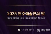 광장일보 이현나 기자 | 지역 문화예술 발전에 기여한 예술인들의 공로를 기리고, 원주의 예술적 성과를 공유하기 위한 ‘제37회 원주예술상 시상식 및 제31집 원주예술지 출판기념회’가 오는 16일 오후 5시, 빌라드아모르에서 개최된다. 올해로 37회를 맞은 원주예술상은 지난 한 해 동안 지역 문화예술 분야에서 두드러진 활동을 펼친 예술인에게 수여되는 상으로, 예술인의 창작 의욕을 고취하고 지역 문화예술의 위상을 높이는 데 중요한 역할을 해왔다. 올해 시상식에서는 ▲대상 ▲공로상 ▲신진예술인상 ▲자랑스러운 원주예술인상 등 총 6명의 수상자가 선정됐다. 또한 행사와 함께 진행되는 제31집 ‘원주예술지’ 출판기념회에서는 올 한 해 지역 예술계의 창작물, 활동 기록 등 다양한 콘텐츠가 담긴 예술지를 시민들에게 공개한다. 원주예술지는 지역 예술의 흐름과 변화를 기록해 온 대표적인 연간 예술지로, 원주의 문화자산을 보존하고 예술인들의 목소리를 확장하는 데 의미 있는 역할을 해오고 있다. 박혜순 원주시 문화예술과장은 “한 해 동안 지역 곳곳에서 활동하며 원주 문화예술의 깊이를 더해준 예술인들께 감사의 마음을 전한다”라고 말했