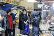 광장일보 주재영 기자 | 하은호 군포시장은 설 명절을 앞둔 지난 5일 관내 전통시장을 찾아 장보기 행사를 진행하며 시장 상인들을 격려했다. 하 시장은 군포역전시장, 산본시장을 차례로 찾아 온누리상품권으로 떡, 과일, 전 등 먹거리 물품을 직접 구입했다. 전통시장을 돌며 시장 상인들과 새해 인사를 나누고 물가 상승 등으로 어려움을 겪고 있는 현장의 목소리를 경청하는 시간도 가졌다. 이날 구입한 물품은 관내 아동 및 청소년복지시설 5곳에 전달됐다. 하은호 시장은 “설 명절을 앞두고 장보기를 위해 많은 시민들이 전통시장을 찾아주시길 바란다”며 “시장에 활기를 불어넣고 지역경제가 되살아날 수 있도록 시에서도 다양한 지원과 노력을 아끼지 않겠다”고 밝혔다.