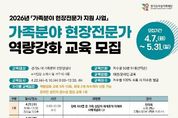 광장일보 박균현 기자 | 경기도여성가족재단은 4~6월 총 5회에 걸쳐 경기도 내 가족분야 전문상담사 250명을 대상으로 가족분야 현장전문가 역량강화 교육을 실시한다. 이번 교육은 가족분야 상담을 필요로 하는 경기도민에게 보다 전문적이고 다양한 영역의 상담서비스를 제공할 수 있도록, 현장에서 활동하는 상담사의 실천 역량을 강화하기 위해 마련됐다. 최근 가족분야 상담 현장에서 중요성이 커지고 있는 우울·자살 위험, 중독, 은둔·고립, 장애·입양 등 다양한 유형별 특성과 주요 이슈에 대한 이해 및 상담사례 등으로 현장에서 곧바로 적용할 수 있도록 프로그램을 구성했다. 모집대상은 경기도 내 가족분야 전문상담사이며, 교육은 차수별 50명 내외로 총 5차에 걸쳐 운영된다. 신청기간은 4월 7일부터 5월 31일까지이며, 재단 누리집을 통해 차수별로 선착순 모집한다. 김혜순 재단 대표이사는 “이번 역량강화교육은 도내에서 활동하는 가족분야 전문상담사들의 상담 현장 대응력과 전문성 제고를 위해 기획한 것”이라면서 “가족분야 현장전문가들과 함께 할 수 있는 사업을 마련하겠다”고 말했다.