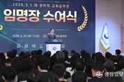 광장일보 주재영 기자 | 경북교육청은 25일 본청 웅비관에서 2026년 3월 1일 자로 신규 임용되는 유․초․중등 관리직 교육공무원에게 임명장을 수여했다고 밝혔다. 이번 행사는 새로 임명되는 교육장, 교장, 교감, 교육전문직원 등 승진 또는 전직하는 관리직 교육공무원 223명을 대상으로 진행됐다. 임종식 교육감은 신규 관리자들에게 임용장을 수여하며 “학생․교사․학부모가 상호 존중하는 학교문화를 만들기 위해서는 관리자의 역할이 무엇보다 중요하다”라며, “승진과 전직의 기쁨을 누리되, 교육을 바로 세우기 위해 함께 고민하고 소통하는 리더가 되어 달라”라고 당부했다. 이날 새롭게 임용된 관리직 교육공무원들은 각자의 임지에서 따뜻한 경북교육 실현을 위해 책임감을 갖고 헌신할 것을 다짐하며, 새로운 출발을 향한 힘찬 발걸음을 내디뎠다.