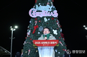 가평군= 주재영 기자 | 가평군과 가평기독교총연합회가 공동 주최한 ‘2025 성탄트리 점등식’ 이 1일 가평군청 앞에서 열렸다. 행사에는 서태원 가평군수를 비롯해 김용태 국회의원, 김경수 가평군의회 의장과 군의원, 임광현 경기도의회 의원, 수도기계화보병사단장 등 주요 인사와 지역 주민들이 참석했다. 식전에는 수도기계화보병사단 군악대의 연주가 펼쳐졌으며, 이어 1부 예배, 2부 내빈 소개와 축사, 3부 점등 순으로 행사가 진행되었다. 점등 순간 주민들은 음악과 함께 빛나는 트리를 바라보며 성탄의 의미를 나눴다. 서태원 군수는 “지난 7월 극한호우 피해 극복을 위해 힘을 모은 군민들에게 감사드린다”며 “성탄트리의 불빛이 군민들에게 희망과 평안을 주길 바란다”고 전했다. 올해 트리는 높이 8m 규모로 수천 개의 조명이 화려한 겨울 분위기를 연출한다. 점등된 트리는 연말까지 공개되며, 내년 1월부터는 새해맞이 홍보탑으로 전환해 지역 공동체 분위기 조성에 활용될 예정이다.