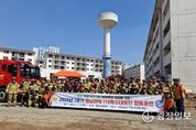 광장일보 주재영 기자 | 경상남도소방본부(본부장 이동원) 119특수대응단은 19일 창원시 상남1구역 재건축현장 일원에서 영남권 7개 특수대응단과 함께 도시탐색구조 합동훈련을 실시했다고 밝혔다. 이번 훈련에는 중앙119구조본부 소속 영남119특수구조대를 비롯해 경남, 창원, 부산, 울산, 대구, 경북 119특수대응단이 참여했다. 이번 훈련은 도심 개발에 따른 건축물 붕괴 등 복합 재난 위험에 대비하고, 재난 발생 시 영남권 특수대응단 간 공조체계를 강화하기 위해 마련됐다. 훈련은 실제 재건축현장을 활용한 실전형 붕괴 대응 훈련으로 진행됐다. 드론을 활용해 붕괴 건축물 내·외부를 탐색하고 매몰자 위치를 확인한 뒤, 콘크리트 천공·절단 장비를 활용해 접근로를 확보했다. 이어 중량물 지지 및 이동 장비를 투입해 붕괴 구조물을 제거하고 요구조자에게 접근하는 구조 절차를 단계별로 점검했다. 특히 이번 훈련은 영남권 특수대응단이 도심형 대형 재난 현장에서 통합 구조전술을 적용하고, 현장 대응 역량과 협업 능력을 높이는 데 초점을 맞춰 실시됐다. 윤영찬 119특수대응단장은 “도심 붕괴 재난은 초기 대