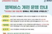 광장일보 이현나 기자 | 충북 보은군은 교육발전특구사업의 일환으로 2025년 7월부터 운영 중인 ‘행복버스’를 오는 19일부터 개편 운행한다고 밝혔다. ‘행복버스’는 관내 아동들이 이동의 제약 없이 청소년센터, 결초보은 문화누리관, 다함께돌봄센터 등 지역 돌봄기관의 방과 후 프로그램에 참여할 수 있도록 지원하는 사업이다. 지난해에는 이용 신청을 받아 매월 노선을 조정하는 방식으로 운영했으나, 올해부터는 이용 편의성 향상을 위해 수요가 많은 구간은 정해진 노선에 따라 순환 운행하고, 그 외 지역은 신청을 받아 노선을 조정하는 방식으로 운영한다. 총 3대의 버스로 운행되며, 1호차와 2호차는 보은읍 죽전리·장신리·교사리·삼산리·이평리 구간을 중심으로 지난해 운행 데이터를 반영한 고정 노선을 따라 운행된다. 해당 노선은 별도 신청 없이 돌봄기관 이용 아동이 이용할 수 있다. 3호차는 1·2호차 운행 구간을 제외한 보은읍 및 면지역을 대상으로, 돌봄기관 프로그램 참여를 희망하는 아동이 사전에 신청하면 매월 노선을 조정해 운행된다. 노선표 및 배차시간 등 자세한 사항은 보은군청 누리집 공지사항과