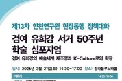 광장일보 주재영 기자 | 인천연구원은 2026년 3월 21일 오후 2시 30분, 청라블루노바홀에서 “검여 유희강의 예술세계 재조명과 K-Culture로의 확장”을 주제로 '제13차 현장동행 정책대화'를 개최한다. 인천연구원이 2026년부터 본격 시행 중인 ‘현장동행 정책대화’의 일환으로 마련된 이번 행사는 검여 유희강 서거 50주년을 기념해 인천서구문화재단과 공동주관으로 개최되며, 그의 예술세계와 정신을 재조명하고 K-Culture로의 확장 가능성을 모색하는 학술 심포지엄으로 진행될 예정이다. 이날 개회식에서는 김성하 인천서구문화재단 대표이사가 개회사를, 강범석 인천광역시 서구청장과 최계운 인천연구원장이 축사를 맡는다. 이어 진행되는 첫 번째 발표에서는 박재복 경동대학교 국제융합학부 교수가 “검여 유희강의 위상 재정립과 예술정신 계승”을, 두 번째 발표에서는 안현정 성균관대학교 박물관 학예실장이 “검여 예술의 현대적 해석과 공공문화·동시대 활용 가능성 확장 논의”를 주제로 발표한다. 종합토론 사회는 전 경기도박물관 관장인 이동국 독립큐레이터가 맡으며, 토론에는 김창수 인하대학교 초빙교수, 최영화