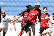광장일보 주재영 기자 | 김해FC2008이 수원FC와의 ‘과거 라이벌전’에서 투지 넘치는 경기를 펼쳤으나, 경기 종료 직전 통한의 실점을 허용하며 아쉬운 역전패를 당했다. 14일 오후 2시 김해종합운동장에서 열린 ‘하나은행 K리그2 2026’ 3라운드 홈 경기에서 수원FC를 상대로 1-2로 패배했다. 이날 경기장에는 총 3,879명(유료 관중 3,247명)의 관중이 운집해 뜨거운 응원전을 펼치며 프로리그 진출 후 높아진 열기를 입증했다. 김해는 이날 3-5-2 포메이션을 가동했다. 최필수가 골문을 지켰고 윤병권-차준영-여재율이 3백을 구성했다. 중원에는 이유찬, 표건희, 미겔 바지오, 문승민, 이슬찬을 배치해 기동력을 높였으며, 최전방에는 베카와 마이사 폴이 나서 수원FC의 골문을 겨냥했다. 전반 초반 김해는 라인을 높게 끌어올리며 공격적인 운영을 시도했으나, 전반 18분 상대 코너킥 상황에서 선제골을 내주며 리드를 허용했다. 이후 최필수의 선방과 차준영의 육탄 방어로 추가 실점 위기를 넘기며 0대1로 전반을 마쳤다. 후반 시작과 동시에 반격에 나선 김해는 4