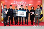 광장일보 주재영 기자 | 천안시는 17일 대일장학문화재단이 취약계층 아동지원을 위해 사용해 달라며 후원금 500만 원을 천안시복지재단에 전달했다고 밝혔다. 대일장학문화재단은 장학금 지급 및 학술연구비 보조 등의 장학사업을 펼치고 있으며, 재단의 관계사인 ㈜크리오는 칫솔, 대일밴드, 위생용품 등을 생산하는 종합생활용품 기업으로 천안시 서북구 직산읍에 천안공장을 운영하고 있다. 박태영 대일장학문화재단 대표는 “우리아이 수호천사 되어주기 모금캠페인 참여를 통해 아동들에게 조금이나마 보탬이 될 수 있어 매우 뜻깊다”라며 “앞으로도 지역사회 공헌 활동과 아동지원사업에 꾸준히 참여해 나눔문화 확산에 기여하겠다”고 전했다. 김석필 천안시장 권한대행 부시장은 “지역사회 아동을 위해 직접 나눔을 실천하는 대일장학문화재단 대표께 진심으로 감사드린다”며 “이번 후원금은 천안시복지재단을 통해, 우리 시 아동들에게 소중히 전달될 것”이라고 말했다. 유니세프아동친화도시 인증을 획득한 천안시는 사회복지공동모금회, 천안시복지재단과 협약을 맺고, 아동 권리를 보장하기 위해 모금캠페인 ‘우리아이 수호천사 되어주기’를 추진하고 있다