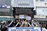 광장일보 나학천 기자 | 수원시 팔달구는 2025년 11월 26일 지동교 일원(지동시장·미나리광시장·못골시장)에서 ‘제6회 새빛세일페스타 연계 Boom-up 물가안정 릴레이 캠페인’을 실시했다. 이날 행사에는 경제교통과 직원과 물가모니터요원 등 20여 명이 참여해 현수막·전단 등을 활용해 전통시장 및 착한가격업소 이용을 홍보하고, 불공정 상행위 근절과 건전한 소비문화 확산을 안내했다. 또한 새빛세일페스타 참여 독려 등 지역경제 활성화를 위한 시책도 함께 홍보했다. 허두경 팔달구 경제교통과장은 “릴레이 캠페인을 통해 물가안정 분위기를 확산하고 전통시장과 골목상권에 활력이 더해지길 기대한다”며 시민들의 적극적인 이용을 당부했다. 이번 캠페인은 11월 24일부터 27일까지 장안구·권선구·팔달구·영통구가 릴레이 방식으로 이어가며 수원시 전역에서 진행된다.