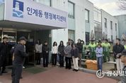 광장일보 나학천 기자 | 수원시 팔달구 인계동은 지난 11월 26일 인계동 행정복지센터에서 권선119안전센터와 공공기관 합동 소방훈련을 실시했다. 이번 훈련은 동 행정복지센터 직원, 환경관리원 등 30여 명이 참여했으며, 훈련은 화재 발생 상황을 가정하여 소방안전 교육, 소화기 사용·관리 방법, 화재 현장에서의 대피훈련 등으로 구성됐으며, 실습형 안전 교육을 진행하며 재난대응 체계를 점검했다. 특히 권선119안전센터의 협조로 화재 대응 절차와 대피 요령을 실제 상황처럼 점검했으며, 직원들은 훈련을 통해 위기상황에서의 역할을 숙지하고 현장 대응 역량을 강화하는 계기를 마련했다. 박선옥 인계동장은 "이번 훈련을 통해 유사시 신속하고 체계적인 대피가 가능하도록 안전 의식을 높일 수 있었다"며 "앞으로도 실효성 있는 훈련을 계속 추진하겠다"고 말했다.