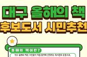 광장일보 주재영 기자 | 대구광역시는 책 읽는 도시 조성을 위해 매년 ‘대구 올해의 책’ 10권을 선정·홍보하고 있다. 올해는 대구도서관 개관을 계기로 시민 참여를 더욱 확대하고자 시민추천단을 운영하여 시민 관심도와 참여도를 한층 높일 계획이다. 2026년 ‘대구 올해의 책’ 선정은 △도서추천단 후보도서 추천 △도서선정위원회 심의 △온라인 시민투표 및 최종 도서 선정의 방식을 거치게 된다. 도서추천단에는 분야별 독서 전문가, 구·군 및 교육청 대표사서, 시민, 지역출판협동조합 등 다양한 주체가 참여한다. 시민추천단은 대구도서관 누리집을 통해 대구시민이라면 누구나 참여 가능하며, 어린이·청소년·성인 분야별로 1권씩 총 3권까지 추천할 수 있다. 추천 대상 도서는 △국내 작가가 발간한 2년 이내 단행본 △사회적으로 공감할 수 있는 주제의 도서 △스테디셀러로 자리매김할 수 있는 도서여야 한다. 다만 종교·정치 성향 도서와 과거 ‘대구 올해의 책’ 선정 도서는 제외된다. 추천 기간은 2월 24일 오후 6시까지다. 시민추천단이 추천한 도서는 상위 30권을