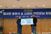 광장일보 주재영 기자 | 남양주시는 지난달 31일 열린 ‘2025년 별내면 종무식’에서 별내면 기관단체장협의회가 지역 내 취약가구 지원을 위해 후원금 200만 원을 별내면 지역사회보장협의체에 기탁했다고 2일 밝혔다. 이번 후원은 한 해의 마지막을 뜻깊게 마무리하고, 지역사회 구성원 간 연대와 나눔을 실천하고자 마련된 자리에서 이뤄졌다. 기탁된 후원금은 향후 별내면 취약가구의 안정적인 생활 지원과 맞춤형 복지사업 추진에 활용될 예정이다. 장태식 별내면 기관단체장협의회 부회장은 “지역과 함께 나눔을 실천할 수 있어 뜻깊게 생각한다”며 “앞으로도 지역과 함께하는 상생하는 지역 공동체를 만들기 위해 최선을 다하겠다”고 말했다. 김혜연 별내면장은 “이번 종무식은 지역 기관과 단체가 한자리에 모여 올 한 해를 되돌아보고 새로운 출발을 다짐하는 의미 있는 자리였다”며 “앞으로도 일상 속 나눔이 자연스럽게 이어지는 별내면을 만들기 위해 함께 노력하겠다”고 밝혔다.