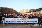 광장일보 주재영 기자 | 의정부시의회는 지난 1일 병오년 새해를 맞아 지역 주민들과 함께 걸으며 희망찬 2026년을 시작할 수 있도록 ‘해맞이 산책, 하천길 따라 새빛정원까지’ 신년 해맞이 행사에 참석했다. 이번 행사는 ▲호원 생활체조광장에서 출발해 ▲신의교~신곡교 중간지점 벽천분수 ▲동오역 생활체조광장 ▲경기도청 북부청사역 인근 벽천분수를 거쳐 ▲신곡새빛정원까지 이어지는 릴레이 산책 코스로 진행됐다. 해맞이 행사에는 시민들과 함께했으며, 15개 동 통장협의회가 행사 준비와 운영에 참여해 중랑천, 부용천 산책로를 걸으며 새해에도 시민들과의 공동체 의식을 함양하고자 마련됐다. 김연균 의장을 비롯한 권안나 부의장과 의정부시장, 의정부시통장협의회 등이 참석했다. 행사에 참석한 의원들은 “희망과 도약을 상징하는 붉은 말의 해를 맞아 시민들과 첫 해맞이를 함께하게 되어 더없이 기쁘다며” “올 한 해 더욱 시민들의 목소리에 귀 기울이고 함께 공감·소통하며, 의정부시의 발전을 이끄는 의정부시의회가 되도록 노력하겠다”고 전했다.
