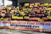 광장일보 주재영 기자 | 여주시는 지난 6일 '여주시 범시민 대책위원회'로부터 345kV 송전선로의 여주시 통과와 여주 남한강 3개 보 재자연화와 개방을 반대하는 두 개의 결의문을 전달받았다. 이 자리에서 이충우 시장은 “시민 여러분의 뜻을 받들어 시장으로서 중앙정부에 여주 시민의 간절한 마음을 잘 전달하겠다”는 뜻을 밝혔다. '여주시 범시민 대책위원회'는 지난 1월 말, 여주 시민의 권익 보호와 효율적인 지역 여론 형성을 위해 그동안 사안별로 운영되어 온 송전선로 통과를 반대해 온 ‘범시민대책위원회’와 여주 남한강 3개 보 재자연화와 개방을 반대해 온 ‘남한강 물이용상생위원회’를 통합한 단체다. 결의문 전달에 앞서 '여주시 범시민 대책위원회'는 같은 날 오전 10시 경기 여주시청 본관 앞에서 발대식을 갖고 ‘용인 반도체 송전선로 반대’, ‘남한강 3개보 재자연화 반대’ 등의 구호를 외치며 결의를 다졌다. 이날 발대식에는 시민단체의 대표자, 김병옥 여주시 노인회장, 여주시 읍면동 이통장연합회장을 비롯해 경기도의회 김규창 부의장과 서광범 의원, 여주시의회 경규명, 이상숙 의원 등 70여 명이 참석했다.
