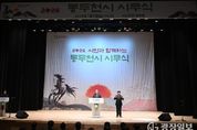 광장일보 주재영 기자 | 동두천시는 2026년 병오년(丙午年) 새해를 맞아 1월 2일 오후 2시 시민회관 공연장에서 시민과 함께하는 ‘2026년 시무식’을 개최했다. 이번 시무식은 시립이담농악단의 병오년 ‘붉은 말의 해’를 알리는 웅장하고 경쾌한 북소리로 막을 열었다. 이어 전통 농악 장단을 현대적으로 재해석한 타악 퍼포먼스와 시립합창단의 ‘새로운 길’, ‘개선행진곡’, ‘위풍당당 행진곡’ 공연이 이어지며 희망찬 새해의 시작을 알렸다. 박형덕 동두천시장은 '2026년 시민과 함께하는 시무식'에서 ‘동두천을 새롭게! 시민을 힘나게! 시민이 행복한 도시! 매일 활력 넘치는 동두천을 위하여!’라는 구호와 함께 힘찬 타고식을 진행하며 시민의 행복과 도시의 활력을 강조했다. 또한 박 시장은 “민선 8기 4년 차를 맞는 2026년 시정의 핵심 키워드를 ‘일로매진(一路邁進)’으로 삼겠다”라며 “미군 공여지 피해 규모 및 발전계획 연구용역을 통해 정부의 확실한 보상과 지원을 이끌어내고, 평화로 가로환경 정비사업으로 보행 공간을 확장하며, 동두천중앙역세권 일대 도시재생사업을 통해 시민을 위한 문화공간과 기반 시설을 확충하겠다”