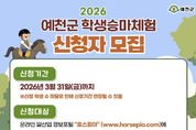 광장일보 주재영 기자 | 예천군은 2026년도 학생 승마체험 지원사업을 오는 31일까지 접수한다고 밝혔다. 이번 사업은 학생들의 체력 증진과 심신 수양을 통한 건전한 청소년 여가문화를 선도하기 위해 마련됐다. 신청 요건은 관내 초·중·고등학교 재학생 중 학교장 등의 추천을 받은 자로, 일반승마분야 150명과 사회공익분야 10명으로 총 160명을 모집한다. 강습은 예천승마클럽에서 1인당 총 10회, 1회당 60분 내외로 진행되며, 기초 신규 입문 과정인 포니(1~3) 과정으로 진행된다. 강습비는 32만 원으로 이중 일반승마분야는 강습비의 70%를, 사회공익분야는 강습비의 전액을 지원받는다. 신청은 온라인 말산업 정보포털 “호스피아”에서 접수받으며, 자세한 내용은 호스피아 홈페이지에서 확인하거나 예천군청 축산과로 문의하면 된다. 권미경 축산과장은 “이번 승마체험에 학생들의 많은 신청을 바란다”며 “앞으로도 학생들의 심리적 스트레스 해소와 건전한 여가문화 선도를 위해 학생 승마체험 사업을 지속적으로 이어가겠다”고 말했다.