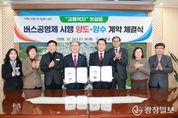 광장일보 주재영 기자 | 의령군이 요금 0원, 이동권 100%를 목표로 한 버스 완전공영제를 전면 시행한다. 지자체가 노선과 인력, 운영 전반을 직접 책임지는 ‘완전공영제’는 전국에서도 손에 꼽히는 사례로, 경남에서는 의령군이 처음이다. 의령군은 지난 24일 버스 완전공영제 시행을 위해 민간 운수업체 2개사와 농어촌버스 노선권, 버스터미널 등 재산권에 대한 유·무형자산 양도·양수 계약식을 체결했다. 이번 계약을 통해 군은 버스 운영에 필요한 자산을 확보하고, 공영제 전면 시행을 위한 제도적·행정적 기반을 마련했다. 군은 연초 두 달간 협업 운영을 거친 뒤 3월부터 ‘경남형 버스 완전공영제’를 본격 시행할 계획이다. 이번 사업은 의령군이 시행 주체가 되되, 경남도와 정책 방향을 공유하며 향후 도 전반으로 확산 가능한 모델이라는 의미에서 ‘경남형 버스 완전공영제’라는 이름으로 추진된다. 공영제 도입은 인구 감소와 자가용 이용 증가로 인한 이용객 감소, 적자 노선 확대 등 농어촌 지역 교통의 구조적 문제를 해결하기 위한 근본적인 대안으로 평가되고 있다. 오태완 군수는 “버스 완전