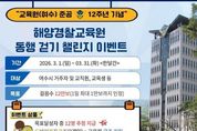 광장일보 주재영 기자 | 해양경찰교육원은 교육원 여수 준공 12주년을 기념해 오는 3월 1일부터 31일까지 한 달간, 여수 시민과 함께하는 비대면 걷기 행사 '해양경찰교육원 동행 걷기 챌린지'를 운영한다. 이번 챌린지는 GPS 기반 모바일 앱‘워크온(WalkOn)’을 활용한 비대면 방식으로, 참가자들은 각자의 일상 속에서 자유롭게 걷기에 참여할 수 있다. 여수 지역 거주자와 교육원 교직원·교육생이라면 누구나 참여 가능하며, GPS인증을 통해 여수 지역 내 걸음수가 인정된다. 참여자는 행사 기간 동안 12만보(1일 최대 1만보)를 달성하여 응모할 수 있다. 목표 달성자 중 총 12명을 선발해 기념품을 증정하며, 희망자에 한해 교육원 방문 견학 기회도 제공한다. 특히 이번 행사에서는 최신 베이커리 트렌드인 두바이쫀득쿠키(일명 ‘두쫀쿠’)를 여수 지역 소상공인을 통해 우선 구매해 지역 경제 활성화에도 기여할 예정이다. 교육원 관계자는 “함께 걷는 건강한 활동을 통해 시민과 소통하고, 국민 곁을 지키는 해양경찰의 역할과 가치를 자연스럽게 알리고자 이번 행사를 마련했다”며 많은 관심과 참여를 바란다고 전했다