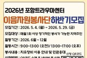 광장일보 주재영 기자 | 포항시 북구보건소 트라우마센터는 지역사회 재난 및 일상 속 심리적 어려움을 겪는 시민들의 회복을 지원하기 위해 2026년 하반기 ‘이음 자원봉사단’을 추가 모집한다. 이음 자원봉사단은 재난 이후 심리적 어려움을 겪는 시민들과 지역사회 자원을 연결하는 가교 역할을 수행하며, 트라우마 회복을 위한 공공 정신건강 서비스의 현장 지원 인력으로 활동하고 있다. 이번 모집은 내달 4일부터 29일까지 진행한다. 매월 1회 이상 정기적인 봉사가 가능한 대학생 및 지역주민이라면 누구나 신청할 수 있다. 선발된 자원봉사자는 6월부터 12월까지 활동하며, 오전(09:00~13:00) 또는 오후(13:00~17:00) 중 시간대를 선택할 수 있다. 주요 활동 장소는 트라우마센터 치유장비실로 봉사단은 ▲치유장비 이용 안내 ▲민원 응대 등 센터 이용자 지원 업무를 수행한다. 이 외에도 ▲센터 및 마음건강 인식 개선을 위한 홍보 캠페인 활동 ▲치유장비실 이용 안내 및 현장 지원 ▲취약계층의 센터 서비스 연계 및 정서적지지 역할 등을 수행한다. 신청은 네이버폼을' 통해 접