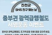 광장일보 이현나 기자 | 충북 진천군이 ‘중부권 광역급행철도(JTX)’ 조기 착공을 위한 군민과 국민의 관심을 모으기 위해 오는 3월 29일까지 SNS 서명운동 참여 이벤트를 진행한다. 이번 이벤트는 수도권과 중부권을 연결하는 핵심 교통망인 JTX 건설의 필요성을 널리 알리고, 온라인을 통해 누구나 쉽게 서명운동에 참여할 수 있는 분위기를 조성하기 위해 마련됐다. 참여 방법은 3월 29일까지 진천군 공식 SNS 채널(인스타그램, 유튜브 등) 가운데 1개 이상을 팔로우한 뒤 JTX 서명운동에 참여하고 네이버 폼을 통해 인증하면 된다. 이벤트 참여자 중 무작위 추첨을 통해 선정된 100명에게는 ‘올리브영 1만 원권 상품권’을 증정하며, 당첨 결과는 오는 4월 3일까지 개별 문자 안내와 함께 모바일 기프티콘으로 발송될 예정이다. 이벤트와 관련한 자세한 사항은 진천군 홈페이지, 공식 SNS 채널을 통해 확인할 수 있다. 오정훈 군 미래전략실 주무관은 “서울 잠실에서 광주·용인·안성·진천 등을 거쳐 청주공항과 오송을 연결하는 134km 규모의 JTX는 국가 균형발전을 견인할 핵심 사업”이라며 “