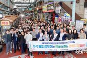 광장일보 주재영 기자 | 경상북도의회는 9월 26일 추석명절을 맞아 대규모 국제행사인 APEC 정상회의를 앞두고 있는 경주시를 방문하여 1900년대 초부터 오랜역사를 자랑하고 있는 중앙시장을 찾아 ‘전통시장 장보기 행사’를 가졌다. 이 날은 최병준·배진석 부의장, 정경민 문화환경위원회 부위원장, 황명강·최덕규 도의원을 비롯해 의회사무처, 도 민생경제과, 경주시 직원 등 80여 명이 함께 참여해 명절 대목을 맞은 상인들에게 힘을 보태고 도민들과 따뜻한 정을 나누는 시간을 가졌다. 이번 행사는 최근 지속되는 고금리와 고물가로 소비심리가 위축된 가운데, 어려움을 겪고 있는 전통시장 상인들에게 조금이나마 도움이 되고자 마련됐다. 배진석 부의장을 비롯한 도의원들과 의회사무처 직원들은 과일 등 제수용품과 명절선물 등을 구입하며 전통시장 상인들에게 힘을 보탰다. 이어 상인회 및 유관기관 관계자들과 함께 ‘전통시장 활성화 간담회’를 열어 현장의 목소리를 청취하고, 특히 대규모 국제행사인 APEC 정상회의를 전후하여 경주를 방문하는 관광객들이 전통시장을 찾을 수 있도록 하는 방안 등에 대해 논의했다.