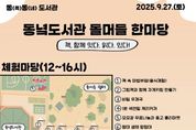 광장일보 주재영 기자 | 제주도교육청 동녘도서관은 조천읍도서관과 함께 오는 27일 낮 12시부터 오후 5시까지 동녘도서관에서 지역 주민을 대상으로 ‘돌머들 한마당’ 행사를 개최한다. 이번 행사는 도서관 간 자원과 역량을 공유하고 지역 독서문화 확산에 기여하고자 9월 한 달간 운영 중인 ‘동(쪽)동(네) 도서관’ 사업으로 체험마당과 공연마당으로 나누어 진행된다. 체험행사는 돌머들 쉼터에서 낮 12시부터 오후 4시까지 책 속 마법부엌(샌드위치·팝콘 만들기), 자개 열쇠고리 만들기, 비밀 우체국(비밀편지·행운카드), 1분 색연필 풍자 초상화, 무료 나눔장터 및 중고장터, 곤충책 소개와 곤충도장 만들기, 마음도감-미니북 만들기, 제주 풍경 오려붙이기 그림, 대형 에어 놀이기구 등 9개 프로그램이 마련된다. 우천 시 실내 진행된다. 공연마당은 오후 4시부터 5시까지 도서관 강당에서 가족체험뮤지컬 ‘노리야 학교가자’가 공연되어 그림자극, 과학놀이, 샌드아트, 레크리에이션 등으로 구성된 수업 형식의 무대를 통해 아이들이 참여하고 즐길 수 있는 오감만족 프로그램이 제공된다. 체험행사는 현장 참여가 가능하며 공연은