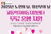광장일보 주재영 기자 | 파주도시관광공사 교통약자이동지원센터는 10월 2일 “노인의 날”과 10월 10일 “임산부의 날”을 맞이하여 특별교통수단 무료 운행 서비스를 진행한다고 밝혔다. “노인의 날”은 센터에 등록된 이용자 중 만 65세 이상을 대상으로 하며, “임산부의 날”은 센터에 등록된 임산부를 대상으로 무료 운행을 지원한다. 이용 방법은 기존 배차 접수 방식과 동일하며, 해당 기념일인 00:00~24:00에 콜센터에 접수된 배차건에 한하여 무료로 이용할 수 있다. 공사 조동칠 사장은 “교통약자이동지원 서비스는 단순한 교통수단 제공을 넘어 사회적 가치 실현에 기여하고 있다”며, “앞으로도 다양한 기념일을 연계한 사회공헌 활동을 추진해 교통약자의 권익 증진과 행복하고 안전한 이동 환경 조성에 힘쓸 계획이다.”라고 전했다.