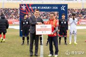 광장일보 이현나 기자 | 2026시즌 K리그1, 3라운드 강원FC의 강릉 홈경기 개막전이 3월 15일 오후 4시 30분 강릉종합운동장(강릉하이원아레나)에서 FC안양을 상대로 개최됐다. 이번 2026시즌 강원FC 홈경기는 전 경기(19경기)가 강릉에서 개최될 예정으로, 강릉시민들의 뜨거운 관심이 집중되고 있다. 강릉 홈경기 전경기 개최를 확정 짓는 과정에서 강릉시의 적극적인 협조가 결정적인 역할을 했으며, 이에 강원FC는 이번 홈 개막전에서 감사의 뜻을 전하고 강릉시 체육 발전을 기원하는 기부금(1억 원) 전달식을 거행했다. 2025 시즌을 리그 5위로 성공적으로 마무리한 강원FC가 새로운 도약을 준비하는 가운데, 강릉 시민들의 기대와 응원 열기가 뜨겁게 달아오르고 있다. 한편, 강릉시는 향후 지속적인 강원FC 경기 홍보를 통해 지역 사회 내 축구 열기를 확산시키고 범시민적 응원 문화를 조성해 나갈 계획이다.