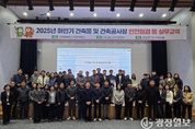 광장일보 이현나 기자 | 강원특별자치도는 최근 전국적으로 건축현장에서 중대재해 사고가 잇따라 발생함에 따라 건축분야 안전점검 실무자의 전문성과 현장 대응능력 강화를 위해 11월 26일 강원연구원 리버티홀에서 '건축물 및 건축공사장 등 안전점검 실무교육'을 실시했다고 밝혔다. 이번 교육은 강원특별자치도 건축안전센터 주관으로 도 및 시군 건축·주택 분야 인허가, 건축물 관리 업무 담당 공무원 등 60여 명이 참석했다. 교육은 건축물 및 건축공사장 안전점검 요령, 건축구조 안전 모니터링 지도 등 실무자의 현장 수행 능력과 인허가 업무 역량을 종합적으로 강화할 수 있는 내용으로 구성됐다. 김순하 강원특별자치도 건축과장은 “이번 교육을 통해 실무자들의 전문성과 현장 대응 능력이 한층 강화될 것으로 기대한다”며, “앞으로도 도민의 안전을 최우선으로 건축물 안전관리 체계 구축과 실무 역량 강화를 위한 교육 및 제도적 지원을 지속적으로 확대해 나가겠다”고 밝혔다.