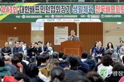광장일보 나학천 기자 | 대전시의회 조원휘 의장은 14일 제43회 대한배드민턴협회장기 생활체육 전국배드민턴대회에 참석해 참가자들을 격려했다. 이번 대회는 15일까지 이틀간 한밭체육관, 대전대 맥센터, 도솔다목적체육관, 창대체육관 등 4개 경기장에서 열리며, 전국 94개 클럽 2,000여 명이 참가해 남자복식·여자복식·혼합복식 클럽대항전을 펼친다. 예선은 조별 리그전, 본선은 토너먼트 방식으로 진행된다. 조원휘 의장은 축사에서 “전국 각지에서 대전을 찾아주신 2000여 명의 동호인 여러분을 진심으로 환영한다”며 “배드민턴은 남녀노소 누구나 즐길 수 있는 생활체육의 꽃으로, 이번 대회가 시민의 건강 증진은 물론 동호인 간의 깊은 우정을 나누는 화합의 장이 되길 기대한다”고 밝혔다. 이어 “최근 서남부종합스포츠타운 착공을 계기로 대전 체육 인프라가 한 단계 더 도약하게 될 것”이라며 “앞으로 대전이 대한민국 대표 스포츠 도시로 발전하도록 노력하겠다”고 밝혔다.