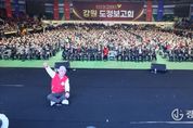 광장일보 이현나 기자 | 강원특별자치도는 3월 15일 오후 1시30분, 원주 치악체육관에서 '도민과 함께하는♥ 강원 도정보고회' 원주권 행사를 개최했다. 이번 보고회는 2026년 도정 운영 방향인 ‘도민공감 행정’을 현장에서 실현하기 위해 마련된 자리로, 지난 춘천권 행사에 이어 두 번째로 열렸다. 이 자리에서는 도정의 주요 정책과 현안을 도민에게 직접 설명하고 현장의 목소리를 듣기 위한 소통의 장으로 진행됐다. 이날 행사에는 원주권역 도민 7천여 명이 참석해 체육관을 가득 메우며 높은 관심을 보였다. 유상범 국회의원과 박정하 국회의원, 김시성 도의회 의장, 원강수 원주시장, 김명기 횡성군수, 최명서 영월군수, 심재국 평창군수, 신경호 도 교육감 등 주요 인사도 함께해 도정 현안과 지역 발전 방향에 힘을 모았다. 김진태 도지사는 보고회에서 PPT를 활용해 도정 주요현안을 직접 설명했다. 먼저, 김 지사는 '강원특별법 3차 개정안' 추진상황을 보고하며 “통합특별시 출범으로 강원도와 강원특별법이 절대 소외되어서는 안된다”고 재차 강조했다. 이어 “강원특별법 3차 개정안이 내일 국회 심사에 오르기로 되어