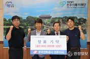 광장일보 주재영 기자 | 한국전력공사 진주지사는 26일 추석 명절을 맞아 지역 내 1인 가구를 지원하기 위해 진주시복지재단(이사장 이성갑)에 생필품 20세트(과일 외 3종, 환가액 200만 원 상당)를 기탁했다. 이번에 기탁된 물품은 진주시에서 추진 중인 ‘1인 가구 안부살핌서비스’와 연계하여, 관내 1인 가구에 전달될 예정이다. 이번 지원은 명절을 홀로 보내는 1인 가구가 지역사회에서 따뜻한 정을 느낄 수 있도록 마련됐다. 이재우 지사장은 “추석 명절을 맞아 소외감을 느끼기 쉬운 1인 가구에 작은 위로가 되길 바란다”며 “앞으로도 공기업으로서 지역사회와 상생하며 지속적인 나눔을 실천하겠다”고 말했다. 재단 관계자는 “1인 가구를 위한 따뜻한 관심과 지원에 감사드리며, 재단은 앞으로도 다양한 기관과 협력해 지역 내 복지사각지대 해소에 힘쓰겠다”고 말했다. 한편, 한국전력공사 진주지사는 올해만 세 차례 진주시복지재단을 통한 나눔을 실천하고 있으며, 저소득층 주거환경 개선·에너지 취약계층 지원 등 다양한 사회공헌활동을 이어가며 지역사회 복지 증진에 앞장서고 있다.