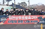 광장일보 주재영 기자 | 김천상무 임직원과 팬이 함께 지역 사회에 온기를 전했다. 김천상무프로축구단이 12월 17일, 김천시 모암동 일대를 찾아 ‘사랑의 연탄 나눔’ 봉사활동을 진행했다. 행사에는 김천상무 임직원과 함께 ‘2025 팬즈데이 참여자가 함께 했다. 김천상무는 관내 에너지 취약 계층의 따듯한 겨울에 보탬이 되고자 2022년부터 ‘사랑의 연탄 나눔 행사’를 이어오고 있다. 특별히 올해는 사무국 임직원과 함께 팬이 동참하여 의미를 더했다. 김천상무는 올해를 시작하며 진행한 ‘2025 팬즈데이’ 수익으로 마련했다. 이를 통해 김천 시민에게 다가가기 위한 노력은 항상 계속된다는 점을 간접적으로 드러냈다. 봉사활동에 참석한 팬은 “시즌이 끝나서 아쉬움이 있었는데, 김천상무와 함께 뜻깊은 활동을 할 수 있어서 보람 있었다. 앞으로도 이런 활동이 지속되어서 지역 사회에 따듯함을 전할 수 있었으면 좋겠다.”라고 소감을 전했다. 김천상무 이재하 대표이사는 “김천 시민에게 다가가기 위한 김천상무의 노력은 비시즌에도 계속된다. 동참해 주신 팬 여러분께 감사의 말씀을 드리며, 김천 시민의 따듯한
