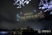 광장일보 박균현 기자 | 세계관개시설물 유산인 만석거 일대를 빛으로 수놓는 ‘2026 만석거 새빛축제’의 메인행사인 드론쇼, 불꽃쇼가 4~5일 열려 시민들의 발길을 끌었다. 수원시는 만석거의 가치를 널리 알리고 야간 관광을 활성화하기 위해 2024년부터 ‘만석거 새빛축제’를 열고 있다. 3일 시작된 2026 만석거 새빛축제는 12일까지 만석공원과 만석거 일대에서 열린다. 올해는 시민들의 큰 사랑을 받았던 불꽃쇼를 1회에서 2회로 확대하고, 드론 500대를 활용한 드론쇼를 새롭게 시작했다. 버스킹 공연은 기존 1회에서 6회로 확대해 관람객에게 풍성한 볼거리를 제공한다. 수원시 관계자는 “4월 12일까지 경관조명과 음악분수를 볼 수 있고, 10~12일에는 버스킹 무대가 펼쳐진다”며 “많은 시민이 축제를 찾아 봄밤 벚꽃과 함께하는 낭만을 즐기길 바란다”고 말했다. 수원시는 이번 ‘만석거 새빛축제’를 시작으로 ▲화성행궁 야간개장(5월~10월) ▲2026 수원 국가유산 야행(8월) ▲2026 수원 드론·불꽃 축제(9월) ▲2026 수원화성 미디어아트(9월 19일~10월 6일) 등 야간 관광 활성화를 위한 다