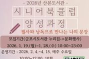 광장일보 주재영 기자 | 군포시산본도서관은 2026년에도 관내 시니어들에게 책을 통해 서로 소통하고 공감하는 능동적 독서교육 프로그램인 ‘시니어 북클럽 양성 과정’을 운영한다고 밝혔다. 이번 교육은 2월 4일부터 4월 15일까지 매주 수요일 오전 10시부터 12시까지 총 10주차로 진행되며 북클럽 운영을 위한 운영법, 글쓰기 방법, 주제도서의 낭독과 필사 등에 대해 교육하여 시니어 독서동아리로 자발적인 활동을 할 수 있도록 실전교육 위주로 진행된다. 산본도서관에서 2025년도에 ‘낭독과 필사로 떠나는 글쓰기 여행’ 수업을 맡았던 최선화 강사가 진행하며 도서관은 교육 기간 중, 신규 시니어 독서동아리를 모집 및 결성하여 지속적인 독서 모임 활동을 지원할 계획이다. 함께 글쓰기 및 독서에 관심있는 관내 55세 이상 시니어라면 누구나 신청 가능하며, 1월 19일부터 선착순으로 20명을 모집한다. 신청은 군포시도서관누리집 문화행사신청 또는 전화 접수가 가능하다. 하은호 군포시장은 “앞으로 산본도서관이 시니어 세대가 책으로 하나 되는 소통공간이 될 수 있도록 다양한 독서교육 프로그램을 운영하겠다”라며 “독서교육을 통해 자발적인 독서동아리 모임을 이어 나가고 시니어 세