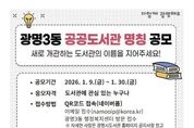광장일보 주재영 기자 | 광명시가 광명3동 새 도서관의 이름을 지어줄 주인공을 찾는다. 시는 올해 10월 개관 예정인 ‘광명3동 공공도서관’ 명칭 공모를 9일부터 30일까지 22일간 진행한다고 9일 밝혔다. 광명3동 공공도서관은 광명3동 공공복합청사(광명동 104-9) 내 지상 5~6층에 연면적 1천600㎡ 규모로 조성ᅟᅡᆫ다. 어린이·종합 자료실을 비롯해 실감 놀이터, 어린이 창작공간, 강의실, 동아리실 등 전 세대가 함께 이용할 수 있는 복합문화공간으로 운영할 예정이다. 이번 명칭 공모는 도서관이 시민의 일상과 가장 가까운 생활 문화공간으로 자리 잡을 수 있도록, 공간의 성격과 가치를 잘 담아내면서도 모두에게 친숙한 이름을 찾기 위해 마련했다. 명칭의 적합성, 창의성, 대중성 등을 종합적으로 평가해 최우수상 1건(10만 원), 우수상 1건(7만 원), 장려상 1건(5만 원)을 선정하고, 온누리상품권으로 시상할 계획이다. 선정 결과는 오는 2월 중 광명시도서관 누리집에서 공개한다. 명칭 공모는 도서관에 관심 있는 누구나 참여할 수 있다. 온라인 양식을 작성해 제출하거나, 광명3동 행정복지센터로 방문해 비치된 서식을 작성 후 제출하면 된다. 또한 광명시도서관