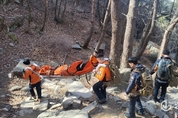 광장일보= 주재영 기자 | 고양소방서(서장 박기완)는 지난 23일 오전 11시께 북한산 대동사 인근에서 발목을 다친 20대 여성 등산객 A씨를 신속히 구조했다고 밝혔다. A씨는 정상에서 하산하던 중 돌부리에 걸려 넘어지며 오른쪽 발목을 접질렀다. 잠시 휴식 후 스스로 하산을 시도했으나 통증이 심해 거동이 어려워지자 119에 구조를 요청했다. 신고를 받고 출동한 구조대원 9명과 구급대원 2명은 북한산성 국립공원 직원들과 협력해 현장에 도착, A씨의 상태를 확인하고 응급처치를 실시했다. 이후 들것을 이용해 안전하게 하산 조치한 뒤 인근 병원으로 이송했다. 박기완 서장은 “산행 전 충분한 준비운동과 안전수칙 준수가 중요하다”며 “산악사고 예방과 대응 역량 강화를 위해 지속적으로 노력하겠다”고 말했다.