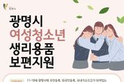광장일보 주재영 기자 | 광명시가 4일부터 청소년의 건강권과 인권 보장을 위해 ‘여성청소년 생리용품 보편지원 사업’ 신청을 받는다. 지원 대상은 광명시에 주민등록을 둔 11세부터 18세까지(2008. 1. 1.~2015. 12. 31. 출생) 여성청소년이며, 등록외국인과 국내거소신고자도 포함한다. 지원금은 1인당 월 1만 4천 원, 연 최대 16만 8천 원으로, 오는 4월 20일부터 광명사랑화폐 생리용품 전용 모바일 카드로 지급할 예정이다. 지원금은 올해 12월 31일까지 사용할 수 있으며, 기한 내 사용하지 않은 금액은 소멸한다. 단, 2026년 1월 이후 전입자는 전입 시기에 따라 지원 금액이 달라질 수 있다. 생리용품은 광명시 내 씨유(CU), 지에스(GS)25, 세븐일레븐, 이마트24 등 지역화폐 가맹 편의점에서 구매할 수 있고, 배달특급 앱과 연계된 온라인 쇼핑몰에서도 이용 가능하다. 신청은 3월 5일부터 3월 31일까지 ‘경기민원24’에서 온라인으로 하거나, 3월 4일부터 11월 13일까지 주소지 관할 동 행정복지센터를 방문하면 된다. 예산 소진 시 조기 마감할 수 있다. &