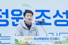 광장일보= 나병석 기자 | 화성특례시의회가 21일 동탄여울공원에서 개최된 '2026 화성특별정원 조성행사'에 참여해 정원문화 확산과 녹색도시 조성에 동참했다. 이날 행사에는 배정수 의장과 김상균, 이은진 의원이 참석했으며, 특별자문위원, 화성특별정원단, 시민참여단 등 다양한 관계자와 시민들이 함께했다. 화성특별정원 사업은 동탄여울공원 음악분수 인근에 9~12㎡ 규모의 정원 17곳을 조성하는 시민참여형 공공정원 프로젝트다. 시민들은 정원의 기획, 설계, 조성, 관리 전 과정에 직접 참여한다. 이 사업은 '보타닉가든 화성' 정책과 연계되어 생활권 공원 중심의 정원문화를 확산하고, 도심 내 녹색공간을 시민들이 일상에서 체감할 수 있도록 하는 데 목적이 있다. 배정수 의장은 "이 자리는 시민이 직접 도시를 가꾸는 의미 있는 시작"이라며, "시민의 손길이 더해질수록 정원은 더욱 깊고 따뜻한 공간으로 성장할 것"이라고 말했다. 이어 "함께 가꾸는 경험이 도시를 더욱 풍요롭게 만드는 출발점이 되길 바란다"고 밝혔다. 이번 사업은 시민참여형 정원 조성을 통해 도심 내 녹색공간 확대와 정원문화 정착을 목표로 추진되고 있다.