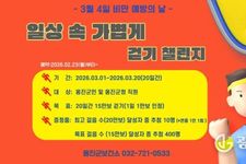 광장일보 주재영 기자 | 옹진군은 군민의 일상 속 걷기 실천을 유도하고 비만 예방과 건강생활 실천 분위기 조성을 위해 3월 1일부터 20일까지 운영되는 '일상 속 가볍게 걷기'챌린지 참가자를 23일부터 모집한다고 밝혔다. 이번 챌린지는 3월 4일 ‘비만예방의 날’을 기념해 추진되는 사업으로, 모바일 걷기 앱 워크온을 활용한 비대면 방식으로 운영된다. 옹진군민과 군청 직원이라면 누구나 참여할 수 있다. 참가자는 20일간 누적 15만 보 걷기(1일 최대 8천 보)를 목표로 일상 속 걷기를 실천하게 되며, 목표 달성자 중 추첨을 통해 기념품을 제공한다. 또한 최고 걸음수(20만 보) 달성자 중 10명을 별도 선정하는 ‘최고걸음상’을 수여해 참여 동기를 한층 높일 계획이다. 아울러, 참여자의 지속적인 실천을 돕기 위해 중간 점검 알림(리마인드 메시지)을 발송해 스스로 걷기 실천 현황을 확인하고 참여를 지속할 수 있도록 지원한다. 특히 이번 챌린지 기간 동안 ‘비만 예방을 위한 건강 식생활 실천 방법’과 ‘영양표시를 보면 건강이 보여요’ 등 건강 정보를 함께 제공하여 군민들이 걷기와 올바른 식생활을 병행할