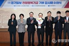 광장일보 주재영 기자 | 인천광역시는 3월 24일 시청 접견실에서 인천 문화예술 진흥을 위한 ‘천원행복기금’ 민간 1호 기탁자인 ㈜경기일보와 김기태 인천본부 사장에게 감사패를 수여했다고 밝혔다. 이번 감사패는 ㈜경기일보가 ‘천원정책’과 관련하여 인천시 문화예술 활성화 재원으로 5,000만 원을 민간 1호 기탁자로서 기부한 데 대해 300만 인천시민을 대신해 감사의 뜻으로 전달됐다. 이번 기탁은 천원행복기금 조성의 첫 번째 발걸음을 떼는 중요한 계기가 됐다. ㈜경기일보가 기탁한 5,000만 원은 기부자의 뜻에 따라, 인천시가 문화예술 진흥을 위한 ‘천원정책’ 사업을 기획하고 추진하는 데 사용될 예정이다. ㈜경기일보는 그동안 ▲2019년 잠비아 초등학교 건립 후원 ▲2020년 코로나 극복 결식 아동 지원 ▲2025년 문화 소외계층 돕기 등 꾸준히 사회공헌 활동을 이어왔으며, 이번 기탁을 통해 인천의 문화예술 향유 문화를 선도하게 됐다. 유정복 시장은 “다시 한번 천원행복기금 ‘민간 1호’에 자발적으로 동참해 주신 ㈜경기일보에 깊은 감사를 드린다”며, “이번 기탁이 마중물이 되어, 2호,
