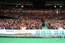 광장일보= 나병석기자 | 화성특례시의회가 제72회 경기도체육대회에 출전하는 화성시 선수단의 결단식에 참석해 선수들을 격려했다. 26일 화성종합경기타운 3층 라운지홀에서는 선수단의 결의를 다지는 행사가 열렸다. 이 자리에는 배정수 의장, 김종복 문화복지위원장, 송선영·이용운 의원, 화성시체육회 임원, 종목별 단체 관계자, 그리고 선수단 등 약 150명이 모였다. 결단식은 경기도체육대회 참가를 앞둔 선수단의 사기를 북돋우고 각오를 다지기 위한 목적으로 마련됐다. 화성특례시 선수단은 4월 16일부터 18일까지 광주시 일원에서 개최되는 대회에 참가한다. 이번 대회에서 선수단은 육상, 수영, 축구 등 27개 종목에 출전하며 종합우승 4연패에 도전한다. 배정수 의장은 선수들에게 "묵묵히 쌓아온 훈련의 시간과 노력을 믿고 끝까지 당당하게 경기에 임해주시기 바란다"고 말하며, "선수 여러분의 땀과 투혼이 화성특례시의 자부심"이라고 강조했다. 이어 "화성특례시의회도 선수들이 오직 경기에 집중할 수 있도록 체육 환경 조성과 지원에 최선을 다하겠다"며 "4연패 달성을 진심으로 기원한다"고 밝혔다. 화성특례시의회는 앞으로도 선수들이 실력을 충분히 펼칠 수 있도록 지원을 이어갈 계