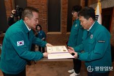 광장일보= 주재영 기자 | 박대성 파주시의회 의장이 대한민국시·군·자치구의회의장협의회가 주관한 제274차 시·도대표회의에서 지방의정봉사상을 받았다. 지방의정봉사상은 지방의회 의원 중 지역 발전과 주민 복지 향상, 민생 현안 해결에 기여한 인물에게 수여된다. 박 의장은 제8대 파주시의회 후반기 의장으로서 회기 운영과 의사 진행 등 의회의 기본 기능을 원활히 수행하는 데 힘써 왔다. 또한 집행기관에 대한 견제와 정책 제안 등 의회 본연의 역할을 적극적으로 이행해 온 것으로 알려졌다. 박 의장은 임기 중 경제적 어려움을 겪는 시민과 지역 상인을 위해 민생회복 생활안정지원금 추가경정예산을 통과시켰다. 이 조치는 시민들의 경제적 부담을 완화하고 지역 상권에도 긍정적인 영향을 준 것으로 평가된다. 수상 소감에서 박대성 의장은 "열린 의정으로 시민과 함께하며 새롭게 도약하는 의회를 만들고, 의정활동 과정에서 나타나는 의견들을 지속적으로 살피고 반영할 수 있도록 끝까지 최선의 노력을 다하겠다"고 밝혔다.