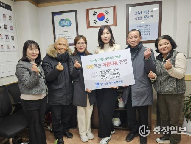 승병숙 매탄2동장은 “지역사회 나눔을 실천하시는 모습이 너무 아름답다. 소중한 기부금은 저소득 어르신들의 일상생활 돌봄에 도움이 될 수 있도록 지원하겠다. 또한 새빛돌봄 제공기관과의 긴밀한 협조를 통해 지역사회 나눔 문화가 활성화 될 수 있도록 노력하겠다”고 말했다.