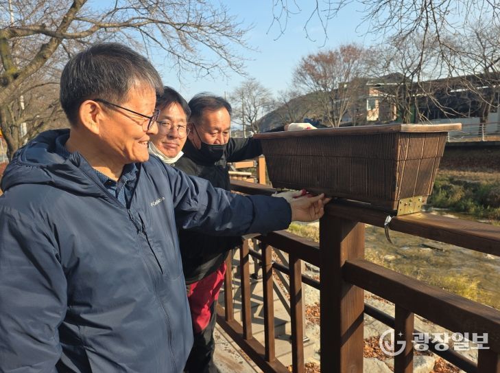 광장일보 주재영 기자 | 금산군은 관람 편의를 위해 금산천·금천대교 꽃길화분을 내년 안전난간대 상부로 이동 설치한다.